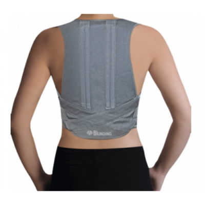 Soporte Postural confeccionado en algodón y lona con barras dorsales flexibles y cinta reguladora de posición, ajustable con cierre de contacto para corregir problemas originados por una mala postura.